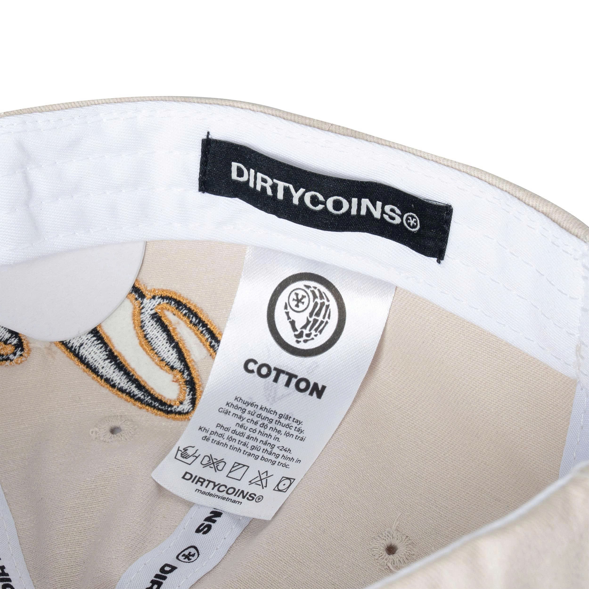 Product Details: • Material: Khaki • Form Dad Cap. • Lining band with DirtyCoins logo print. • Dico logo embroidered in 2D • Embossed logo on the cap buckle.