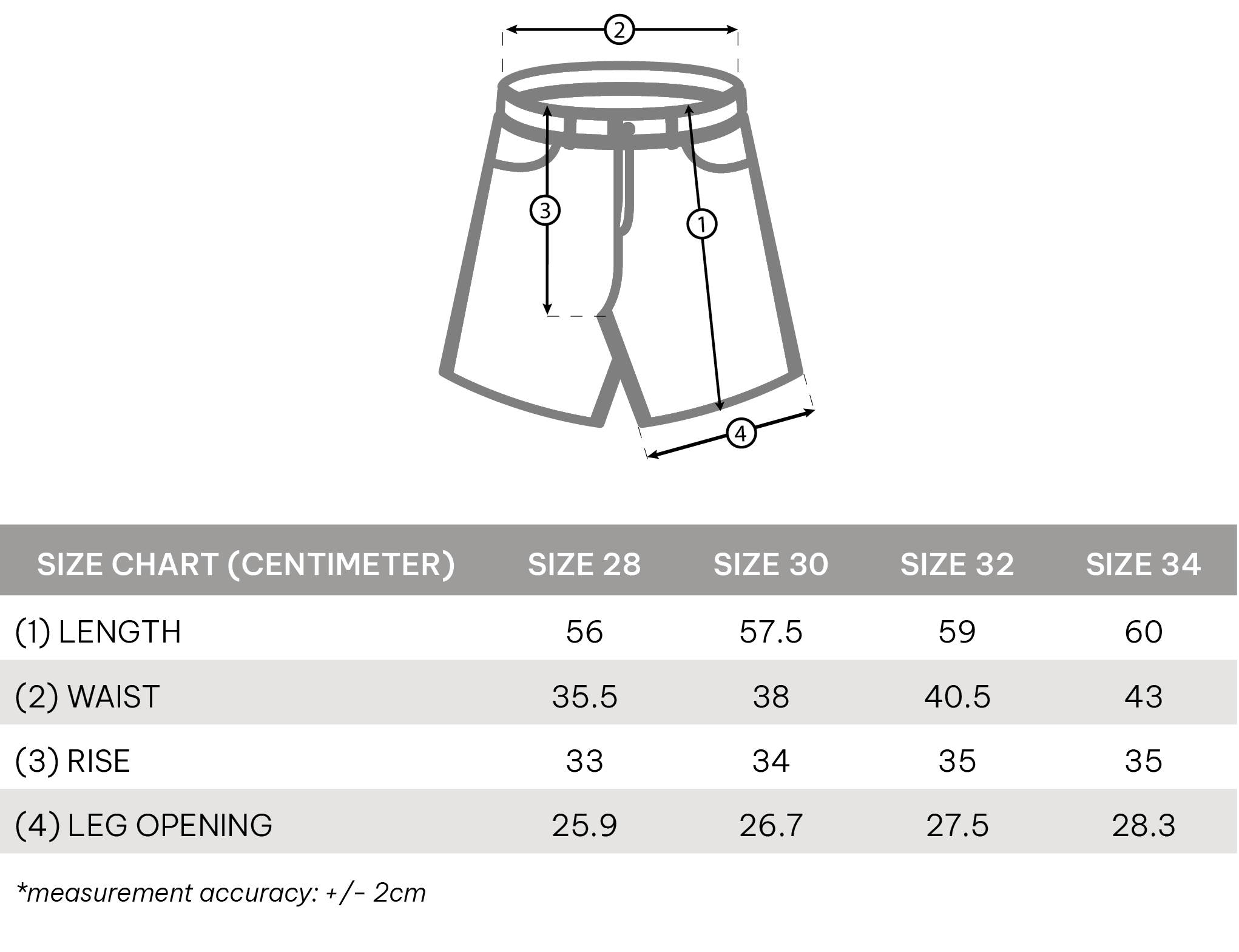 Size Chart: Male model 1m71 58kg wearing size 32.