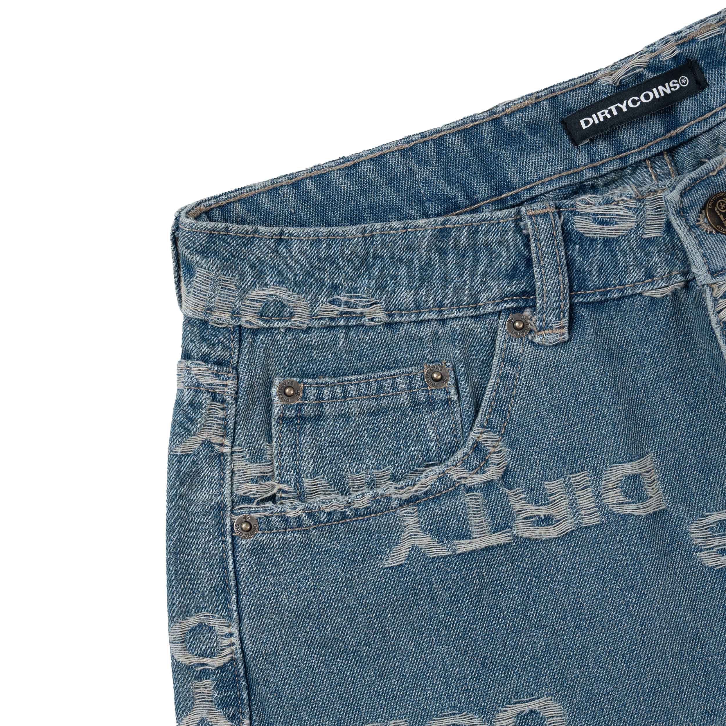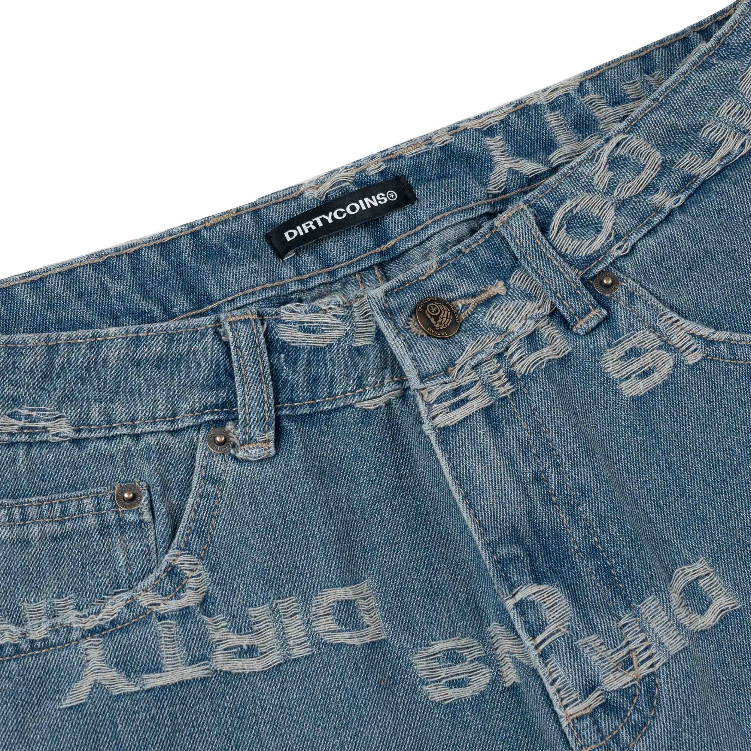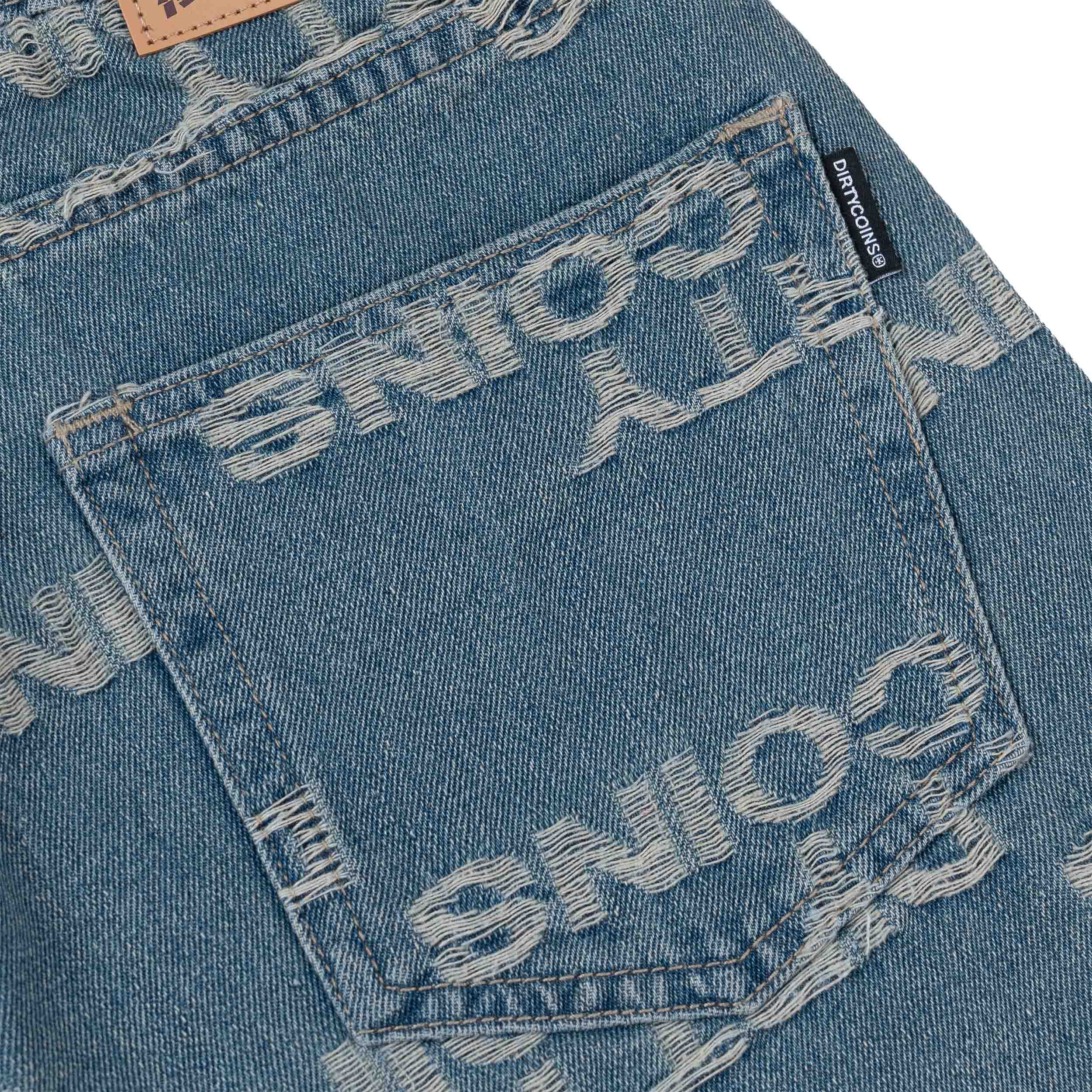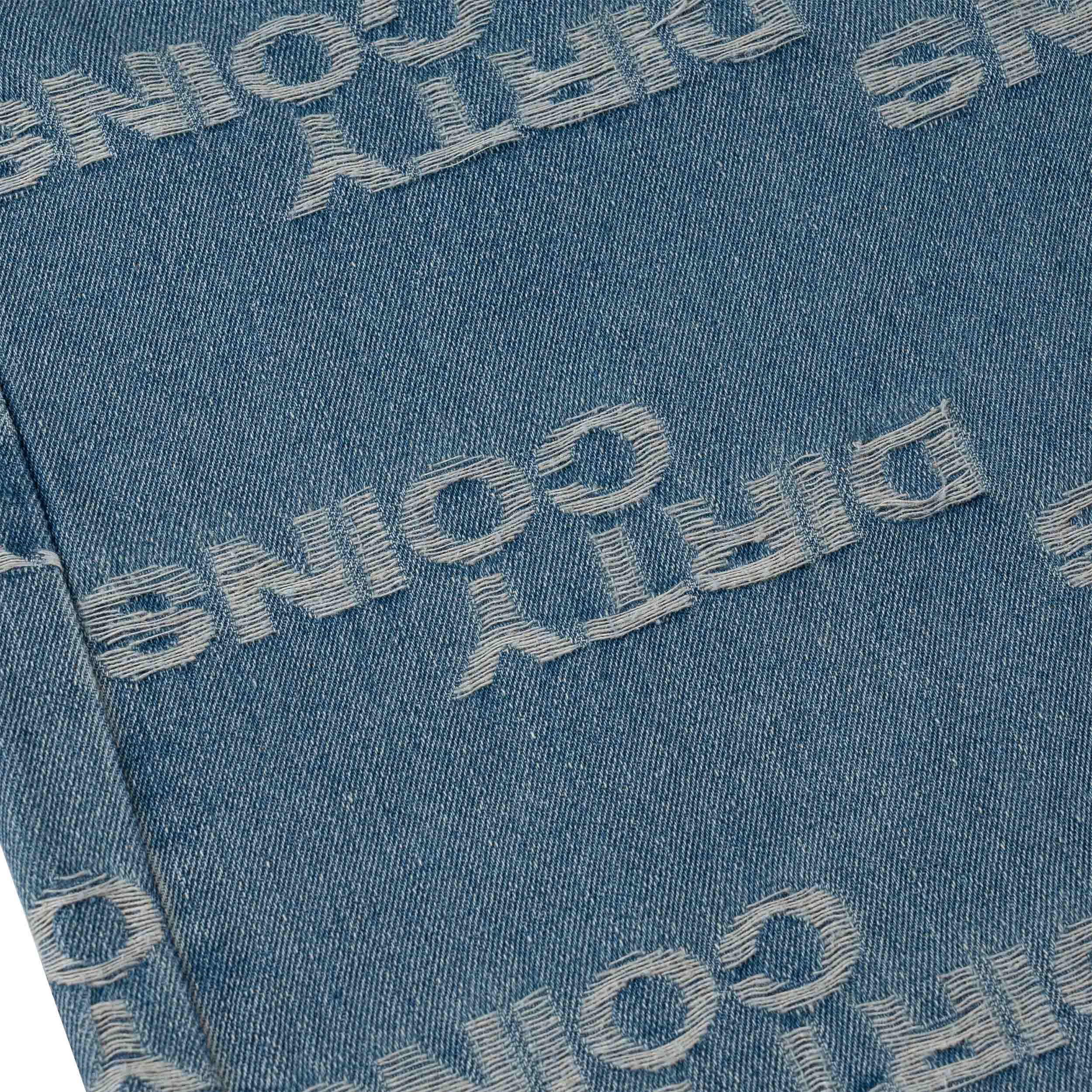• Size: 28 - 30 - 32 - 34. • Material: Cotton Denim. • Baggy Fit. • Fabric features jacquard logo pattern. • Brand leather label sewn on the back of the pants.