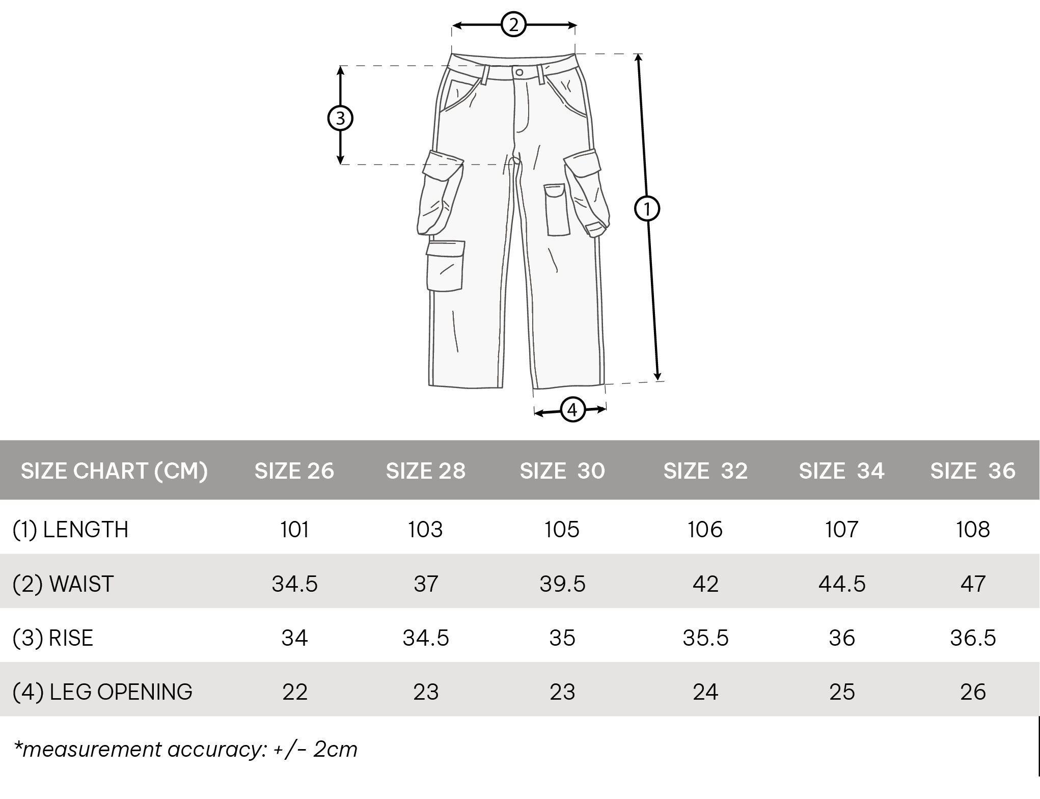 • Pants are equipped with many cargo pockets and have decorative straps on two large pocket flaps.