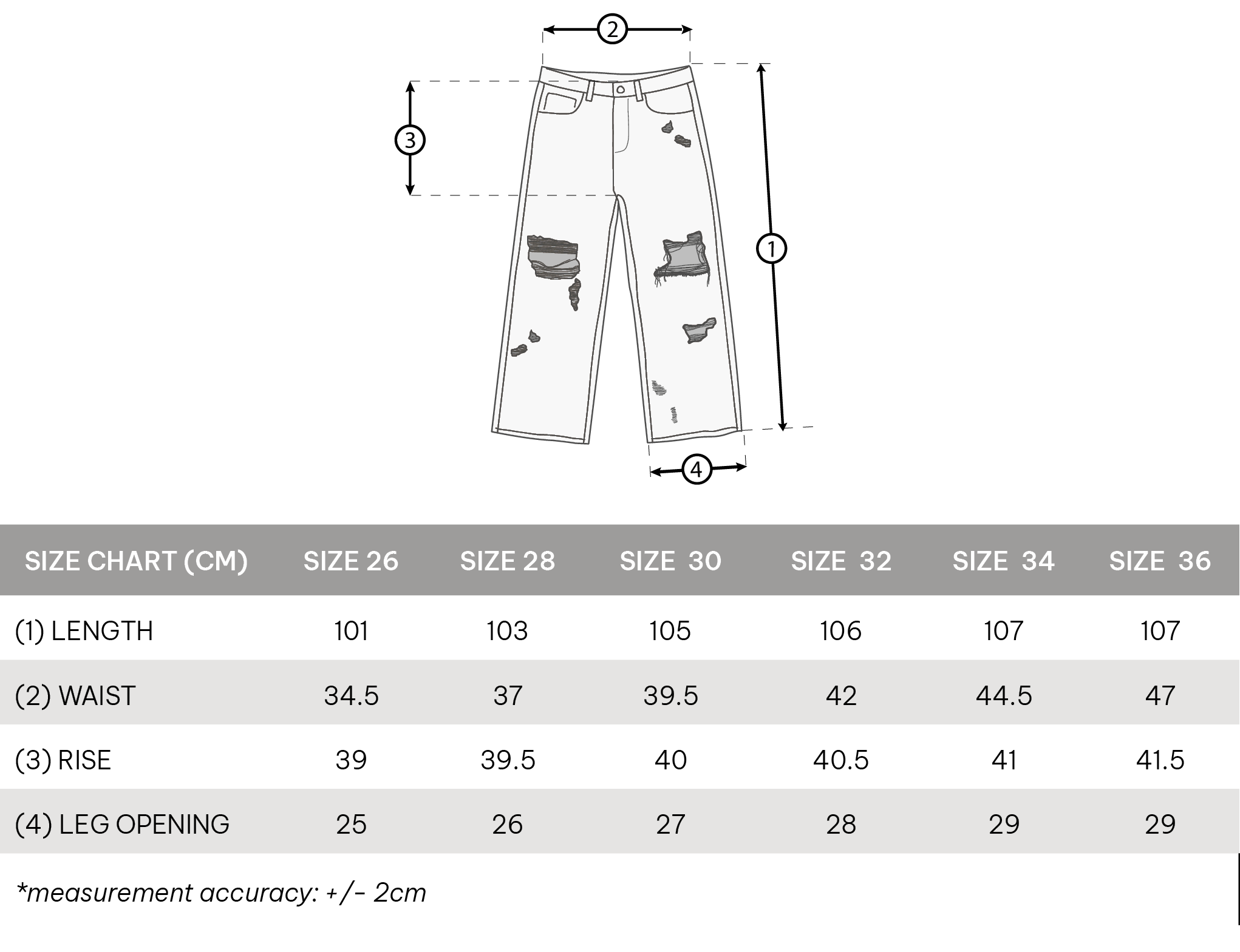 • Size: 26 - 28 - 30 - 32 - 34 - 36